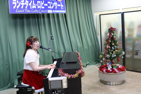 サンタのイメージ服で登場。10数曲のクリスマスメドレーを始め、馴染みのある曲、オリジナル曲「忘れないよ〜はじまりの場所〜」を披露してくださいました。