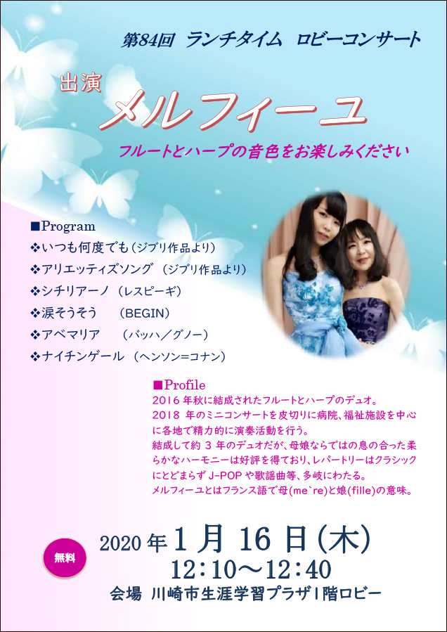 ハープのキレイな音を伴奏に、フルートで素敵なメロディーを演奏してくださいました。